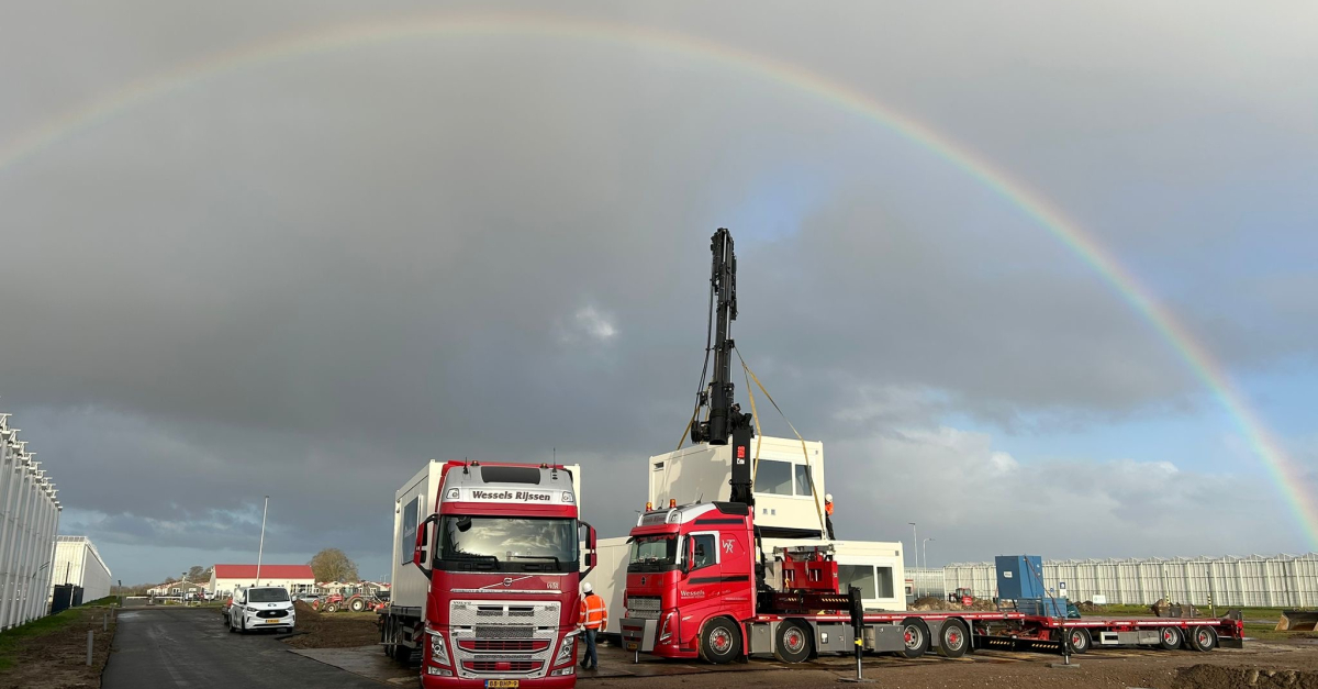 Na enkele weken voorbereiding in het grondwerk zijn vorige week de eerste heipalen geslagen. De regenboog kwam ook even kijken, dat moet een succesvol project worden!